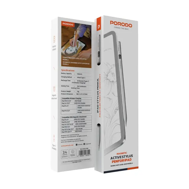 يعتبر هذا القلم الذكي مثالي للرسم والكتابة والتنقل بسلاسة بين برامج الايباد المختلفة Porodo Wireless & Type C Charging Stylus Pen يتميز بجودة المواد المصنوع منها وحجمه المناسب وسهولة استخدامه