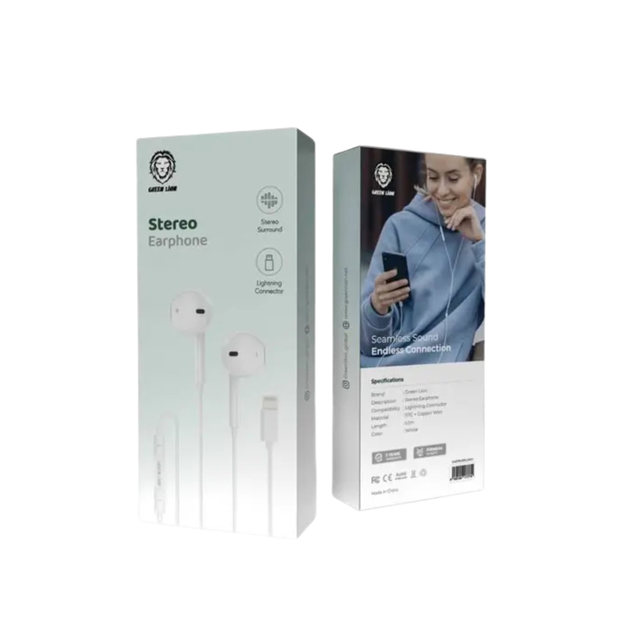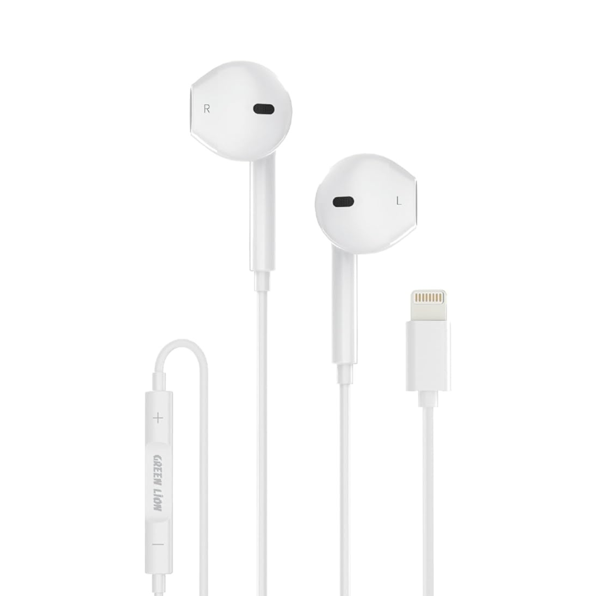 سماعات أذن ستيريو سلكية من جرين ليون مزودة بموصل لايتنينج لون ابيض