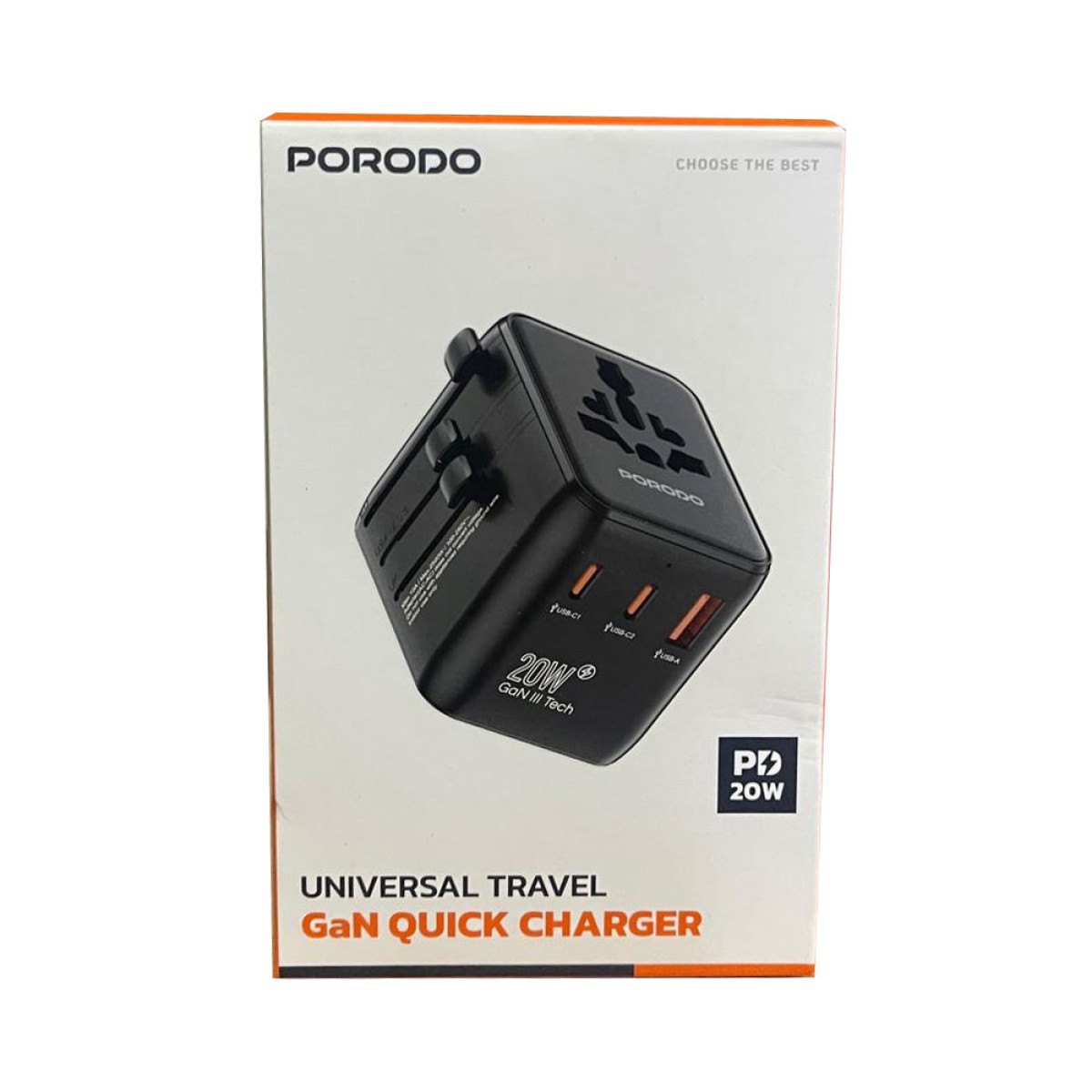 شاحن سفر عالمي Porodo PD20W + QC 3.0