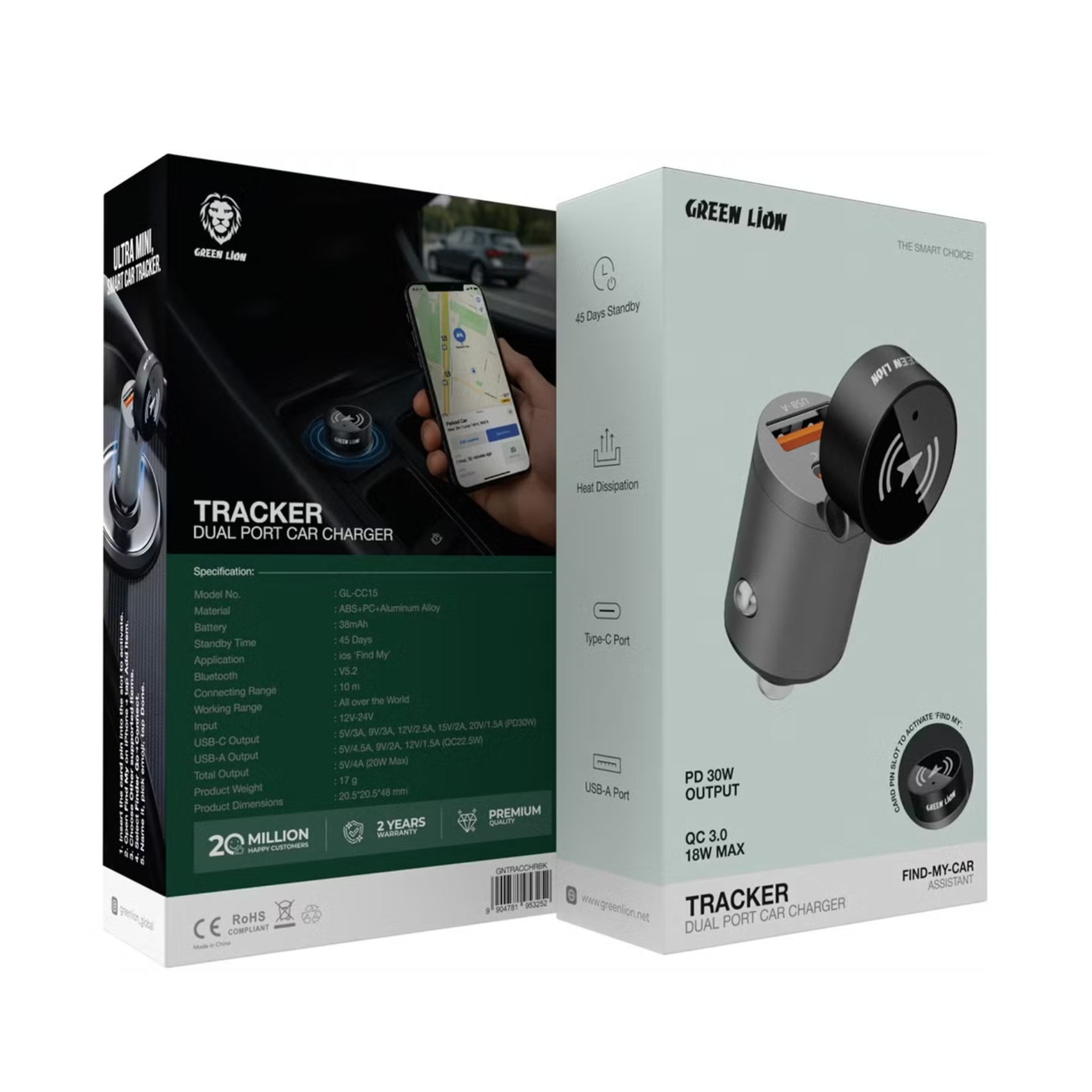 شاحن سيارة ثنائي المنفذ من جرين ليون تراكر – أسود