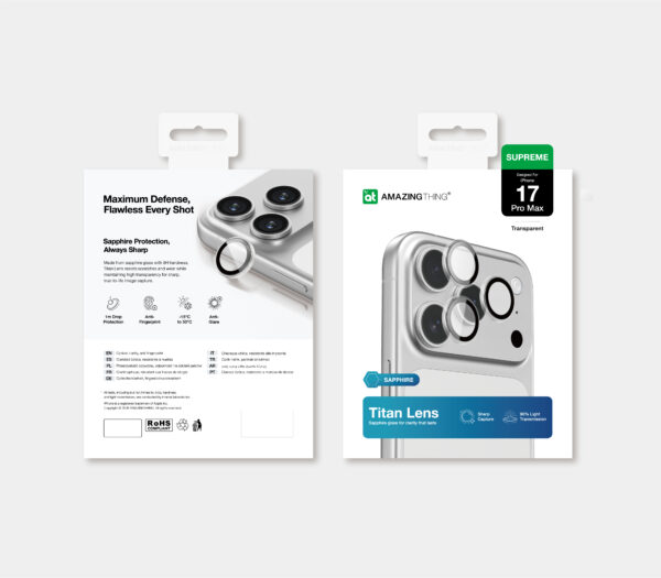 عدسة حماية AmazingThing لهواتف iPhone 17 Pro وPro Max توفر لك مزيجًا مثاليًا بين الحماية القصوى وجودة التصوير العالية. مصنوعة من زجاج عالي الشفافية بإطار من الألومنيوم باللون الفضي، لتضيف لمسة أنيقة على جهازك. تحافظ على وضوح الصور بنسبة نفاذية ضوء تصل إلى 95% مع حماية من السقوط حتى متر واحد، لتبقى عدسات الكاميرا في أمان كامل ضد الخدوش والصدمات.