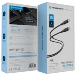كابل Powerology Power Sync Weave USB-C إلى USB-C بطول 2 متر، يدعم الشحن السريع بقدرة 100 واط – رمادي