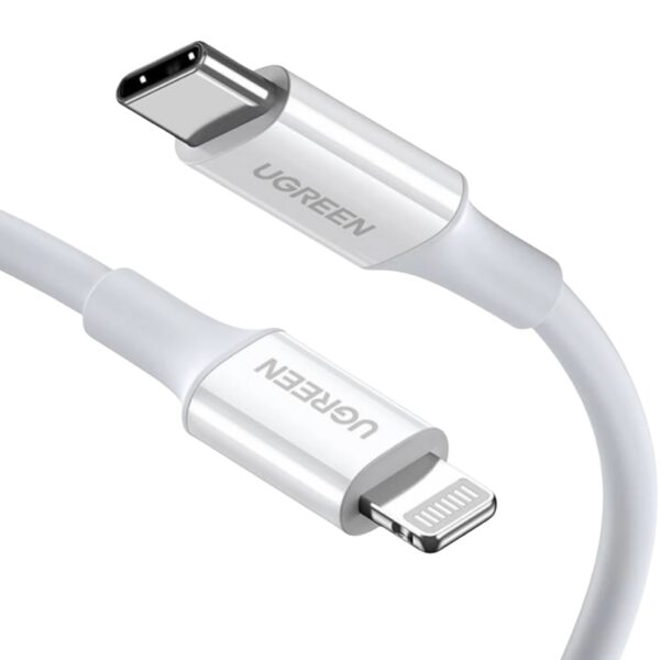 كيبل شحن من تايب سي إلى لايتننق 60 واط بطول 2 متر – أبيض – UGREEN
